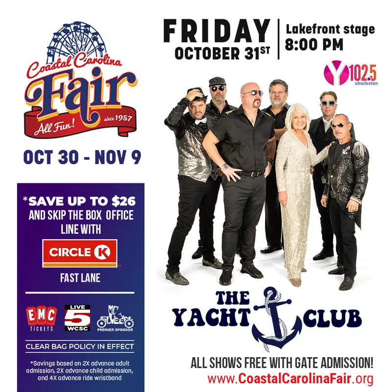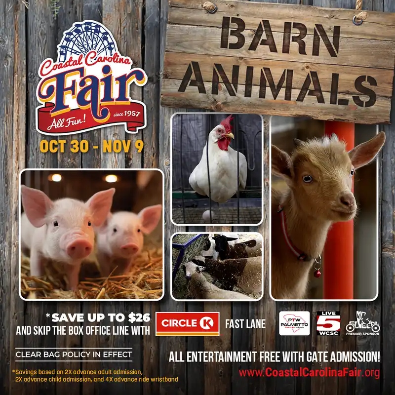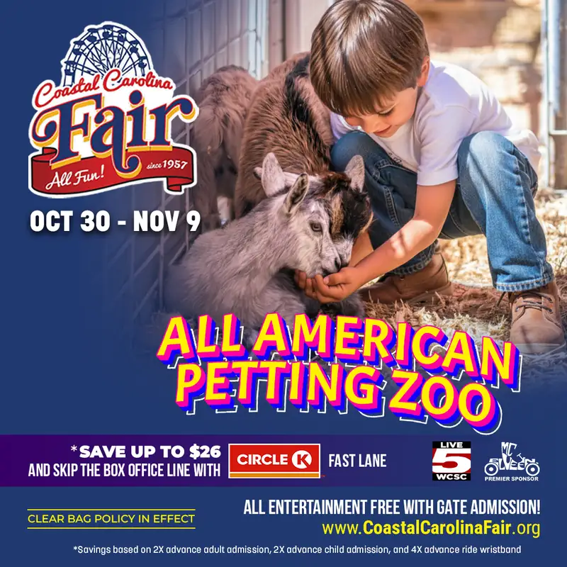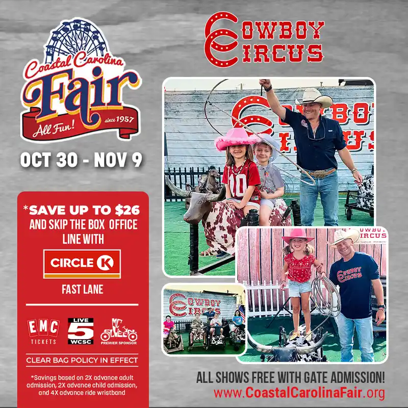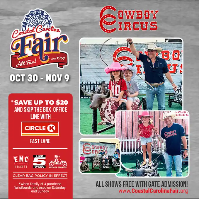 🎉 Senior Day (Exchange Club of Charleston’s National Service Day) will be held at the Coastal Carolina Fair on Wednesday, November 5, 2025! Seniors age 55 and over are welcomed with an admission of only $5.00 all day! 🎟️
