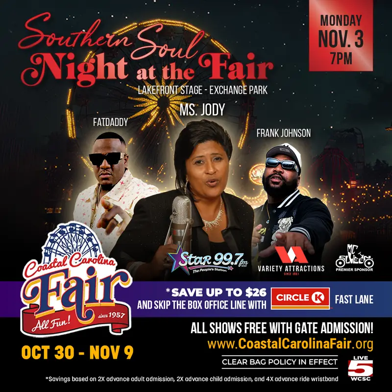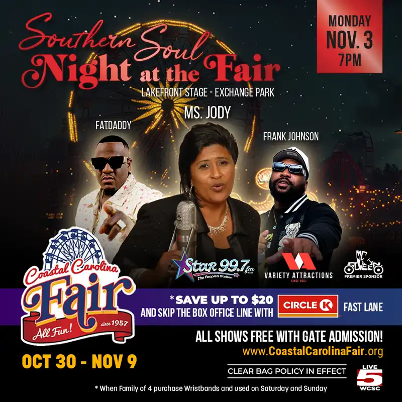 NOVEMBER 3, MON – “Southern Soul Night at the Fair” (Star 99.7) / Ms Jody, FatDaddy & Frank Johnson