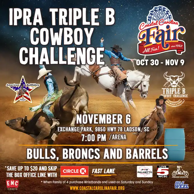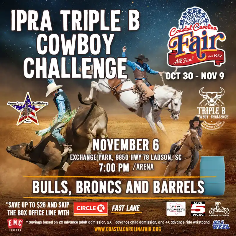 Thursday Nov 6, 2025 - Triple B Cowboy Challenge IPRA sanctioned Bulls, Broncs and Barrels, 7:00 PM