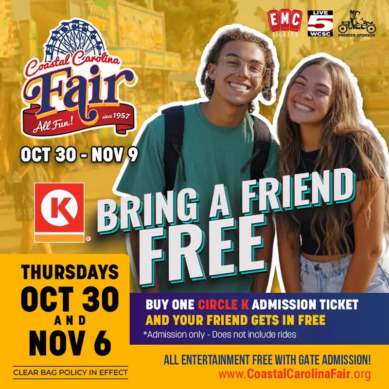 Purchase one Circle K ticket, and your friend enters the gate free! Admission only – does not include rides.